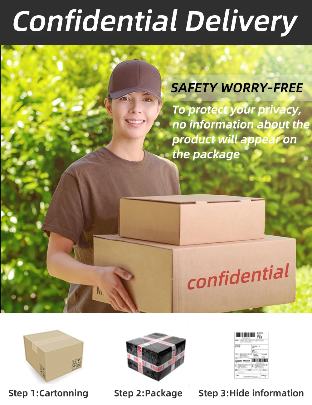 Discreet Packaging: Plain, unmarked packaging for privacy